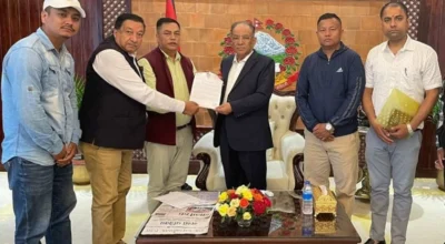 काठमाडौँ, २८ जेठ । बागमती प्रदेशसभा सदस्य विमल ठकुरीले नागरिकहरूको गुनासो पत्रसहित प्रधानमन्त्री पुष्पकमल दाहाल ‘प्रचण्ड’ सँग भेट गरेका छन् । सांसद ठकुरीले आज बिहान नागरिकहरूको गुनासो समेटिएको पत्रसहित प्रधानमन्त्री प्रचण्ड भेटेका हुन् । काठमाडौँ निर्वाचन क्षेत्र नम्बर २ (ख) बाट निर्वाचित सांसद ठकुरीले प्रधानमन्त्री तथा मन्त्रिपरिषद्को कार्यालयमा प्रधानमन्त्री प्रचण्डसँग भेट गर्दै गुनासो पत्र हस्तान्तरण…