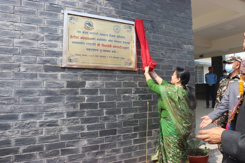 मकवानपुर, ९ फागुन । राष्ट्रपति विद्यादेवी भण्डारीले हेटौंडा उपमहानगरपालिका वडा नम्बर–१ स्थित हेटौंडा अस्पतालको परिसरमा नवनिर्मित भवनको उद्घाटन गरेकी छन् । संघीयता कार्यान्वयन पछि मदन भण्डारी स्वास्थ्य विज्ञान प्रतिष्ठान अन्तर्गतको रहेको नवनिमिर्तत भवनको उद्घाटन भएसँगै हेटौंडा अस्पताल २०० शय्यामा सञ्चालन भएको छ । यसअघि अस्पतालमा तत्कालीन विकास समितिको ६० शय्या र सरकारको ५० शय्यामा मात्र…