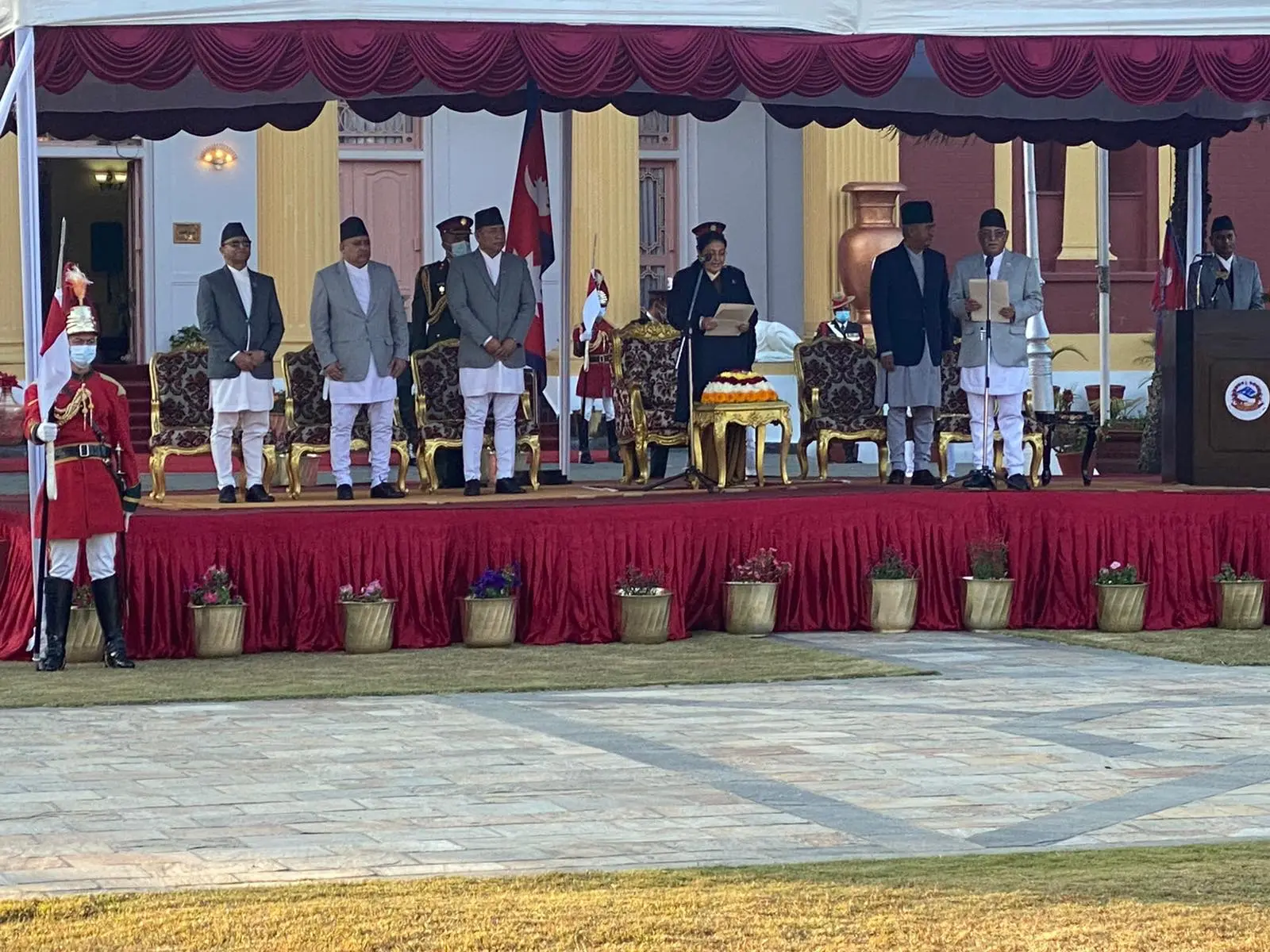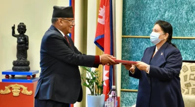 काठमाडौं, ११ पुस । नवनिर्वाचित प्रधानमन्त्री पुष्पकमल दाहाल ‘प्रचण्ड’ ले शपथ लिनुभएको छ । सात दल र केही स्वतन्त्रसहित १७० सांसदको समर्थनमा माओवादी अध्यक्ष प्रचण्ड प्रधानमन्त्री हुनुभएको हो । शीतल निवासमा आयोजित विशेष समारोहबीच राष्ट्रपति विद्यादेवी भण्डारीले पद तथा गोपनीयताको शपथ गराउनुभयो । प्रचण्ड शपथका लागि दौरा सुरुवाल लगाएर पुग्नुभएको हो । यसअघि दुईपटक प्रधानमन्त्री…