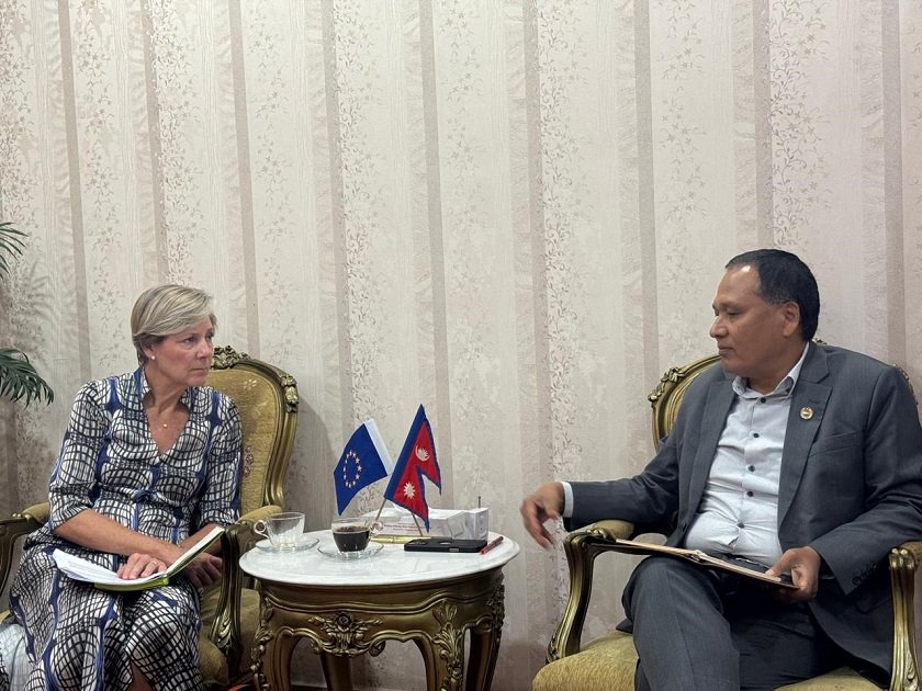 काठमाडौँ, १० असोज । ऊर्जा, जलस्रोत तथा सिँचाइ मन्त्री कुलमान घिसिङ र नेपालका लागि युरोपेली सङ्घका राजदूत भेरोनिक लोरेन्जोबीच शिष्टाचार भेटवार्ता भएको छ । सिंहदरबारस्थित ऊर्जा, जलस्रोत तथा सिँचाइ मन्त्रालयमा भएको भेटमा मन्त्री घिसिङलाई राजदूत भेरोनिक लोरेन्जाले युरोपेली सङ्घका तर्फबाट बधाई दिनुका साथै सफल कार्यकालको शुभकामना व्यक्त गरिन् । नेपालको ऊर्जा क्षेत्रमा सहयोग उपलब्ध गराउँदै…