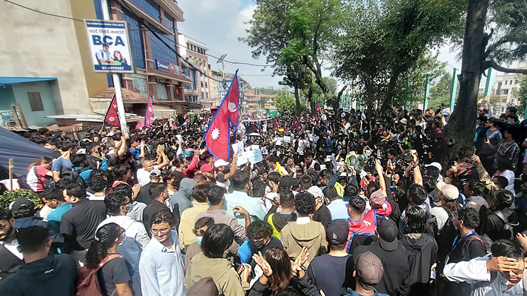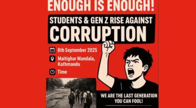 काठमाडौँ, २३ भदौ । सरकारले सामाजिक सञ्जाल बन्द गराएको विरोधमा जेनजी युवाहरूले काठमाडौँको माइतीघर मण्डलामा विरोधमा प्रदर्शन गरेका छन् । आज माइतीघर मण्डलामा उनीहरूले भ्रष्टाचार, अव्यवस्था र सामाजिक सञ्जाल बन्द गर्ने सरकारको निर्णयको विरोधमा प्रदर्शन गरेका हुन् । राष्ट्रिय झण्डा बोकेर सडकमा ओर्लिएका उनीहरूले राष्ट्रभक्ति गीत गाएका छन् । उनीहरूले विभिन्न नारा लेखिएका प्लेकार्डसमेत बोकेका छन्…