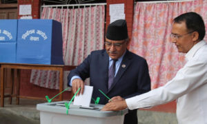 चितवन, ३१ वैशाख । प्रधानमन्त्री पुष्पकमल दाहाल ‘प्रचण्ड’ले आज बिहान ७ बजेर ८ मिनेट जाँदा भरतपुर महानगरपालिका वडा नं ४ स्थित लक्ष्मी मावि लङ्कुको मतदान केन्द्र ‘ख’ बाट मतदान गरेका छन । मतदानपछि प्रतिक्रिया दिँदै दाहालले नेपालमा पहिलोपटक अधिकार सम्पन्न स्थानीय तहको निर्वाचन आज सम्पन्न हुन लागेकाले जनतामा निकै ठूलो उत्साह रहेको बताए। उनले भने…