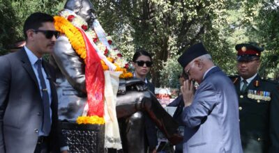 काठमाडौँ, १३ कार्तिक। प्रधानमन्त्री केपी शर्मा ओलीले मानवअधिकारवादी नेता तथा पूर्व मन्त्री पद्मरत्न तुलाधरको छैटौँ स्मृति दिवसका अवसरमा उहाँप्रति श्रद्धाञ्जलि व्यक्त गरेका छन् । शान्ति र मातृभाषाका अभियन्ता तथा साहित्यकारसमेत रहनुभएका तुलाधरको स्मृतिमा आज पद्मरत्न तुलाधर स्मृति प्रतिष्ठानसहित विभिन्न संस्थाहरुले आज शंखधर साख्वा स्मृति पार्क, रत्नपार्कमा आयोजना गरेको स्मृतिसभामा श्रद्धाञ्जलि व्यक्त गरिएको हो । सो…