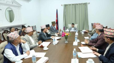 काठमाडौँ, ३० भदौ । प्रधानमन्त्री केपी शर्मा ओलीसमक्ष निर्वाचन आयोगका प्रमुख आयुक्त दिनेशकुमार थपलियासहितका पदाधिकारीले आज भेट गरी आगामी मंसिर १६ गते आइतबार स्थानीय तहको उपनिर्वाचनको मिति तोक्न नेपाल सरकारलाई परामर्श दिनुभएको छ । स्थानीय तहमा हाल रिक्त जिल्ला समन्वय समितिका दुई प्रमुखसहित ४१ जनप्रतिनिधिको बाँकी कार्यकालका लागि उपनिर्वाचनको तयारी भएको हो । भेटमा प्रधानमन्त्री ओलीले…