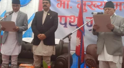काठमाडौँ, २९ चैत । प्रधानमन्त्री पुष्पकमल दाहाल ‘प्रचण्ड’ले इस्लाम धर्मावलम्बीको महान् पर्व इद (इद–उल–फित्र) को अवसरमा नेपालीबिच आपसी एकता, सहिष्णुता र सद्भाव कायम गरी न्यायपूर्ण तथा समृद्ध समाज निर्माण गर्न मद्दत पुग्ने विश्वास व्यक्त गरेका छन् । प्रधानमन्त्री प्रचण्डले आज शुभकामना सन्देश जारी गर्दै इस्लाम धर्मावलम्बीको महान् पर्व इदको अवसरमा स्वदेश तथा विदेशमा रहेका सम्पूर्ण…